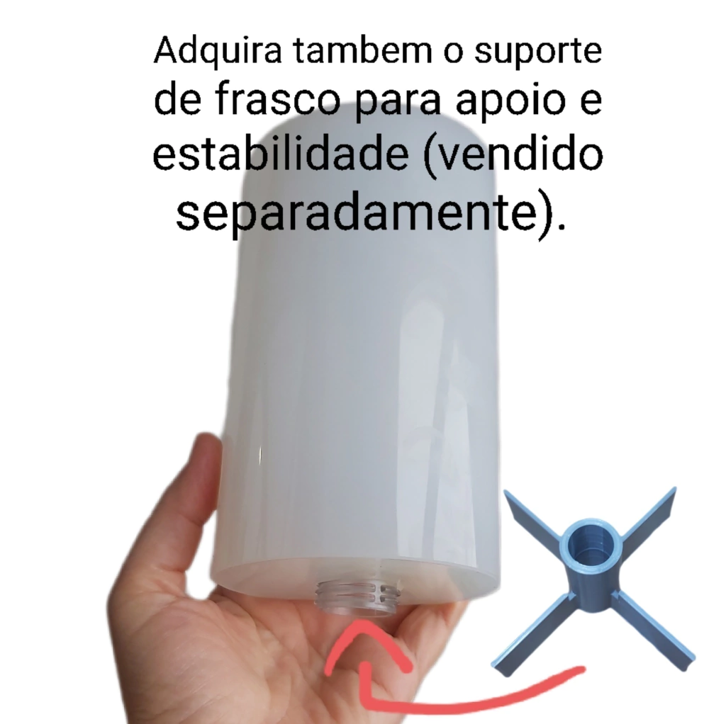 ADQUIRA TAMBÉM O SUPORTE DE FRASCO DE IMPRESSÃO 3D (VENDIDO SEPARADAMENTE). ELE AJUDA A DEIXAR O FRASCO CENTRALIZADO NO MODELO DE MOLDE DE PORTA SABONETE LIQUIDO.